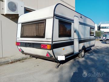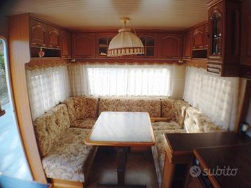 caravan hobby molto spaziosa e discretamente mantenuta 5 posti composto da matrimoniale, 2 letti a castello e lettino su tavolo singolo lunghezza mt 5.85 più timone peso pieno carico kg 858 frigorifero 220 v riscaldamento Trumatic con ventilazione 12v utenze verificate e funzionanti no veranda no revisione adatta per un campeggio stanziale visibile anche sabato 28 e domenica 29 porte aperte