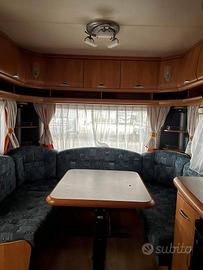 Vendo bellissima roulotte Hobby del 2007 camperizzata. Molto luminosa presenta un’ampia dinette a U, cucina 3 fuochi, lavandino, ampio armadietto, bagno con doccia e letto nautico con gavone, quindi 4 posti letto comodi. Dotata di pannello solare, batteria a gel 100ah nuova, mover truma, stufa truma, frigorifero con celletta freezer, forno a microonde, tendalino fiamma f45s e stabilizzatore Winterhoff ws 3000. Per qualsiasi informazione contattatemi pure.