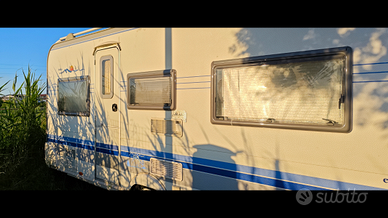 In eccellenti condizioni, letto matrimoniale/dinette dietro, letto a castello anteriore e ulteriore dinette anteriore utilizzabile anche come letto da una piazza e mezzo. Tendalino e veranda completa. Mover, inverter, impianto antenna e tv, stufa Truma a gas, predisposizione doppia bombola, frigo trivalente. Cassetta Wc chimico nuova, serbatoio esterno acque grigie. Comodissima per famiglia.