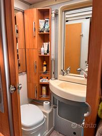 Per realizzo immediato Vendo motorhome hymer, compatto lunghezza 640 tenuto in modo maniacale,il mezzo ha tutto pronto per partire 2letti matrimoniale uno posteriore sopra al grande garage che può contenere uno scooter ,uno basculante doppio riscaldamento truma e webasto . Telaio alko soffietti con manometri in cabina ,retrocamera ,bagno vario(sposti parete e diventa doccia) scalino elettrico con avvisatore acustico,allarme motore allarme volumetrico e shaft blok .scarico grigie elettrico sedili cabina inclinabile pannello 150w,doppia batteria cellula,4posti viaggio e dormire ealtri accessori.