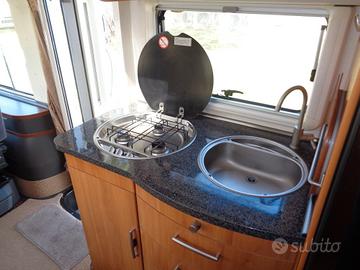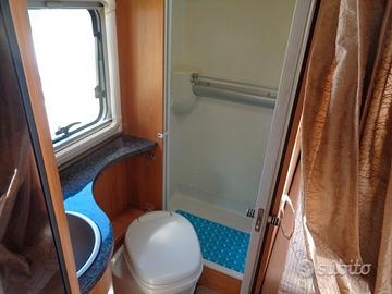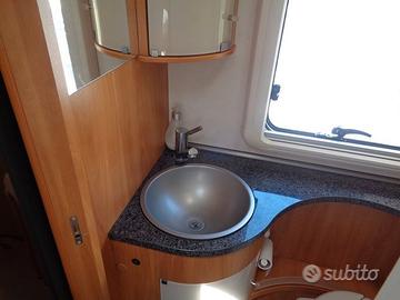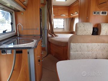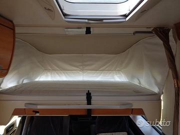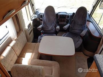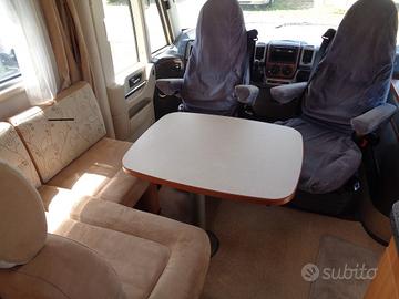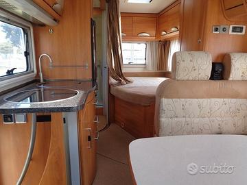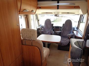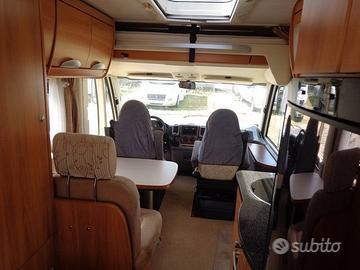 Ottimo camper motorhome immatricolato nel settembre del 2008 motorizzato fiat ducato 3000 di cilindrata per 160 cavalli di potenza, e' omologato 4 posti in viaggio ed ha 4 posti letto distribuiti su due matrimoniali uno alla francese nella parte posteriore ed uno basculante davanti.