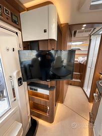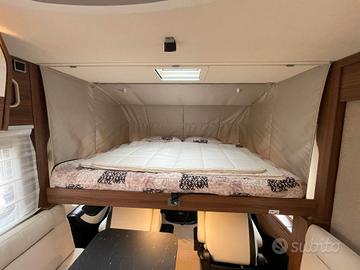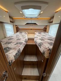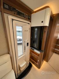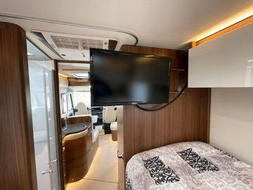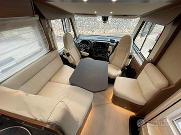 Splendido motorhome di fascia alta con telaio specifico SLC doppio pavimento, letti gemelli, bagno con doccia separata, ampio living dinette con sedili girevoli, basculante anteriore e garage portamoto. Unico proprietario, sempre tagliandato meccanicamente, rimessato al coperto e tenuto in maniera maniacale.