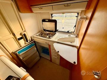 Il veicolo è perfettamente funzionante e in buone condizioni d'uso. Condotte dell'acqua, tubazioni del gas, riscaldamento, e impianto elettrico tutto perfettamente funzionante. Tendalino 2,30 m, Peso a vuoto 2820 kg , Peso lordo del veicolo 3500 kg , 6 cinture di sicurezza, 1 dinette, 4 persone, 1 divano , Posti letto: 2+3 Riscaldamento a gas Truma e boiler, Cucina: fornello a gas a 3 fuochi, lavello, frigorifero nella parte posteriore, Bagno nella parte posteriore: WC, lavandino, doccia tramite lavandino girevole, Barre portatutto , Scaletta posteriore , Portabici per 2 bici , Zanzariere su tutte le finestre, Tende oscuranti su tutte le finestre, Bracciolo per sedili conducente e passeggero, 2 ampi vani portaoggetti all'interno, 2 vani portaoggetti all'esterno Spazio di stivaggio per 2 bombole di gas da 10 l (esterne) Servosterzo Gradino elettronico Specchietti esterni elettronici Alzacristalli elettrici Radio CD con USB e Bluetooth