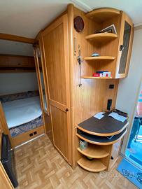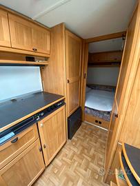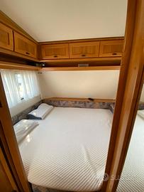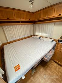 Letto matrimoniale con materasso a molle con sotto gavone collegato con esterno e dinette che diventa un altro matrimoniale