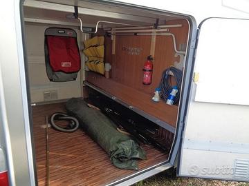 E' dotato di tendalino, antifurto,antenna satellitare motorizzata, aria condizionata in cabina,retrocamera,autoradio, pannello solare,inverter, doppio pavimento, oscuranti plissettati in cabina,doccino esterno,tv, piedini di stazionamento, moquettes hymer,cruise control, abs, esc, asr, ruota di scorta,luci statiche di curva con fendinebbia.