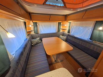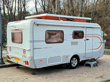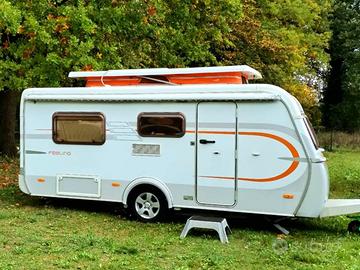 Per mutate esigenze, vendesi caravan Hymer Eriba Feeling 430 ottimamante tenuta e super accessoriata, con 3/4 posti letto, Le roulotte Eriba sono una garanzia di qualità e durata, realizzate in vetroresina anti grandine sono a prova di infiltrazioni ed estremamente robuste. La serie Feeling abbina a dimensioni esterne non esagerate, un'abitabilità interna eccezionale (solo il letto matrimoniale da 200x220 cm è più grande di quello di casa). Il tetto a soffietto abbassa la caravan a soli 225 cm in ordine di marcia, ottenendo un baricentro più basso, maggiore aerazione, minore resistenza al vento laterale e consumi ridotti (oltre alla libertà di poter passare sotto molte sbarre di parcheggi). La larghezza e la lunghezza sono rispettivamente di 216 e 608 cm, rendendo talvolta superflua anche l'installazione degli specchi supplementari (dipende dalla larghezza del veicolo trainante). Il peso è contenuto, la massa F2 a libretto è di 1.200 kg e complice la presenza del moover si sposta con estrema facilità. Disposizione interna: Dinette piccola trasformabile in letto singolo Dinette grande trasformabile in ampio matrimoniale king size Bagno completo di WC estraibile Frigo Dometic con congelatore Piano di cottura a tre fuochi La caravan è accessoriata con: Cerchi in lega Ruota di scorta Bombola in vetroresina piena (ancora con sigillo) Mover Truma Tendalino Fiamma Luci led Finestre e porta con oscuranti e zanzariere Serbatoio acqua di serie da 45 litri Serbatoio acqua aggiuntivo da 90 litri Serbatoio acque scure con pompa da 110 litri Batteria AGM da 110 A Pannello fotovoltaico da 100 W Booster Boiler Truma per acqua calda Gancio di traino con sistema antisbandamento Presa gas esterna da campeggio Telo copri timone La caravan è stata sempre rimessata, viene fornita di raccordi e valvole del gas nuovi, installati da centro autorizzato, e pneumatici Continental Vancontact Ultra 185 R14 C appena montati (i migliori sul mercato e con indice di carico e maggiorato).