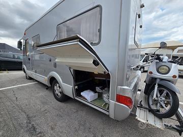 TELAIO AL-KO CON DOPPIO PAVIMENTO PASSANTE TENDALINO RETROCAMERA PANNELLO SOLARE 120W ANTENNA TV TERRESTRE PIEDINI STAZIONAMENTO ZANZAR.PORTA FORNO GAS/GRILL PORTAMOTO ESTRAIBILE ORIGINALE HYMER ANTENNA SATELLITARE TV CICLOMOTORE BENELLI