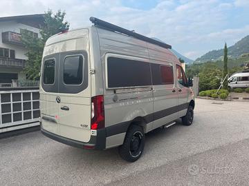 Veicolo nuovo Meccanica: Mercedes Sprinter Alimentazione: Diesel Lunghezza: 593 cm Larghezza: 206 cm Altezza: 295 cm Peso massimo: 3.500 kg Posti omologati: 4 Posti letto: 2 Dotazioni del veicolo: - Pacchetto Linea di dotazioni Premium - Pacchetto Comfort abitativo Grand Canyon S - Mercedes Benz Sprinter 419 CDI - 190 CV - EuroVI-E - Diminuzione peso a 3,5 t - Colore grigio pietra pastello - Cerchi in acciaio da 16" con pneumaticiAll-Terrain (velocità limitata a 120 km/h) - Trazione integrale permanente incl. fariposteriori con tecnologia LED - Fari fendinebbia con luci statiche di svolta - Sistema assistenza fari abbaglianti - Protezione del motore - Adesivo decorativo finestra color carbonio - Tappezzeria Moreno - Veranda Thule 3,25 m con illuminazione a LED - Mobilio Ivy Green