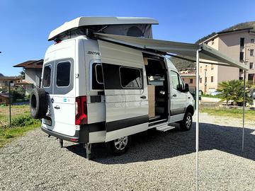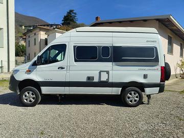 Camper puro su base Mercedes Sprinter 316 CDI 4X4 Immatricolazione: 22/09/2020 Chilometraggio: 45000km Trazione: 4x4 Integrale inseribile con differenziale centrale bloccabile Cambio: Automatico 9G-Tronic con marce ridotte Posti viaggio: 4 Posti letto: 4 Variante Peso: 3,5T (Patente B) Acquistato dal primo proprietario il 30/03/2022 con 8500km ed utilizzato principalmente per viaggi estivi. Rimessato sempre al coperto. Tenuto molto bene, come nuovo sia internamente che esternamente. Presenta soltanto segni lievi "da vegetazione" sulle parti plastiche delle fiancate. Tagliandato sempre presso la rete ufficiale Mercedes-Benz. Alcune caratteristiche: - Tetto a soffietto con secondo letto matrimoniale - Rivestimento termico aggiuntivo per il tetto a soffietto - Riscaldamento Truma Combi D6E (Gasolio/220V) con Kit alta quota. - Serbatoio acque grigie coibentato - Veranda elettrica THULE con illuminazione LED integrata - Sistema di livellamento automatico Tesa AutoLift (elettromeccanico) - Pannello solare 165W - Predisposizione TV - Doppia batteria servizi (al piombo) con BDS - Ruota di scorta con supporto posteriore - Cassaforte - Sedili cabina Aguti - Sistema multimediale MBUX 10,25" con SIM integrata per controllo remoto - Cruise Control adattivo con frenata di emergenza automatica - Tappezzeria in pelle - Serbatoio: 93l