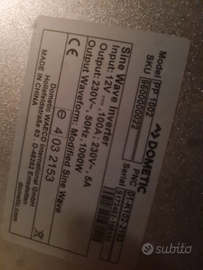 Vendo inverter per camper dometic pp1004 Potenza costante 1000 W Potenza punta 2000 W Con interruttore di accensione e spegnimento e connessione per interruttore esterno come accessorio Connessione di priorità a la rete fiss