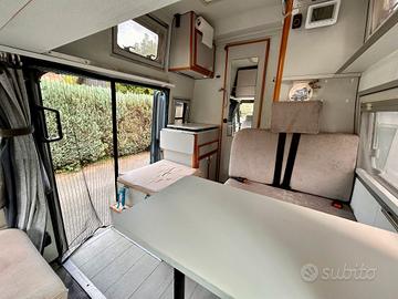 Letto in mansarda per 2 e letti "di emergenza" su dinette o sedile del passeggero. Sedili anteriori girevoli.