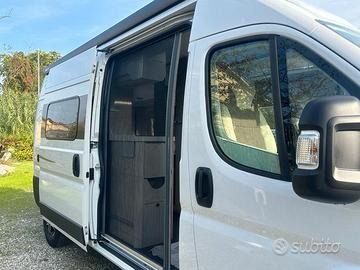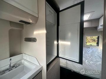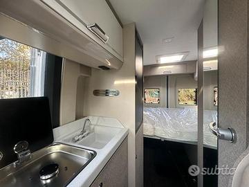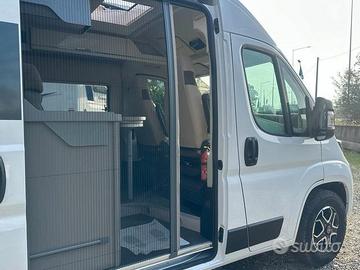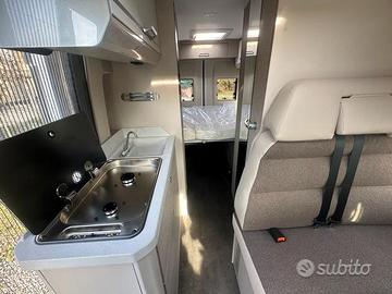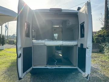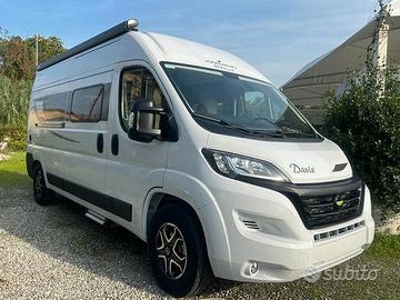 Karmann DAVIS 590 LIifestyle Fiat 2.2 cv. 140 Cambio AUTOMATICO mt. 5,999 x 2,05 h.2,650 posti omologati 4, posti letto 2, cerchi lega 16", riscaldamento Combi 6D E , Fari Fendinebbia , Finestre a filo carrozzeria , Radio Uconnect 7 " con Retrocamera, specchietti elettrici , oscuranti plissettati in cabina , zanzariera su portellone, Tendalino. Prezzo del veicolo esposto ? 72.390,00 su strada