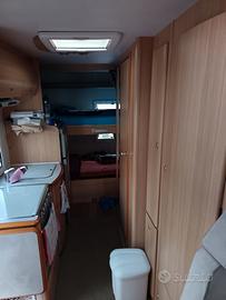 Camper tenuto bene sempre al coperto appena gommato meccanica Ford 2400 cc molto spazioso sedili girevoli riscaldato a gasolio webasto e boiler a gas scocca in vetroresina gancio traino allarme antenna satellitare navale e TV pannello solare porta bici da tre posti letto a castello trasversali 5 posti viaggio 6 a dormire oscurante esterno completo che copre tutta la gabina soffietti a aria per il carico finestra elettrica sulla porta d'ingresso
