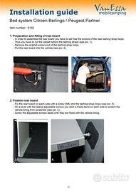 Sistema letto tedesco della "Van-essa Mobilsystem", completo di materassino, usato poco e in perfette condizioni. Si adatta a più veicoli, in particolare a Peugeot Partner e Citroen Berlingo e modelli successivi. Comodissimo letto per 2 persone e facile da montare. Smontato occupa poco spazio nel bagagliaio, lasciando posto per tende e bagagli vari. Prezzo ribassato