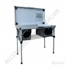 Il Kitch&Box è un mobile da cucina outdoor compatto e multifunzionale, disponibile in due misure (95×50 o 100×50 cm). Perfetto per cucinare in viaggio, offre lavello integrato, piano in acciaio inox, coperchio trasformabile in tavolo e numerosi spazi di stivaggio. Leggero, resistente e facile da trasportare, permette di creare una cucina completa fuori dal veicolo o sotto il portellone posteriore.