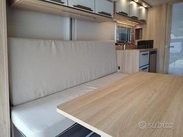 Cucina di bordo, Dinette centrale, Gavone posteriore, Letto, Letto basculante, Panchetta regolabile, Toiletta, WC