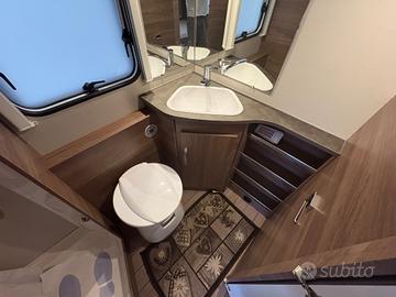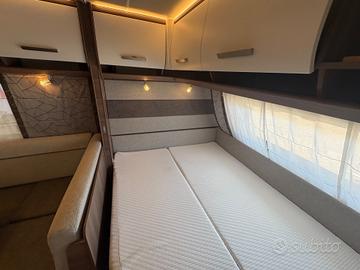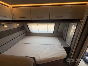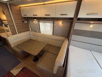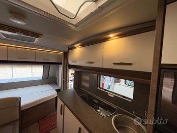 Frigorifero trivalente 150 l, stufa Truma con canalizzazione e ventilazione forzata , cucina 3 fuochi, wc chimico Thetford, full led ,Veranda esterna Dorema, porta bici 2 posti, stabilizzazione anti sbandamento, climatizzatore a tetto, boiler acqua calda, cerchi in lega.