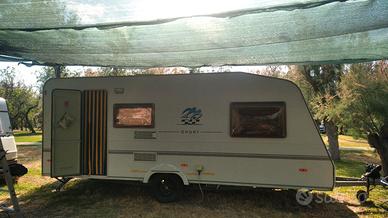 vendo per inutilizzo, roulotte knaus sportwind del 2005. Condizioni perfette, nessuna infiltrazione, impianti perfettamente funzionanti. Marciante e con i documenti in regola, ultima revisione fatta 2 anni fa poi è stata sempre ferma. Utilizzata per campeggio stanziale, è composta da un letto matrimoniale anteriore, letto a castello e dimette centrale trasformabile in un letto da una piazza e mezza. Forno a microonde integrato, impianto di riscaldamento e ricircolo aria fredda, scaldino per acqua calda, bagno con sistema di scarico esterno, cucina 3 fuochi usata pochissimo, garage spazioso sotto la parte anteriore. Sono da sistemare solo le cerniere del gavone anteriore. Le finestre sono tutte dotate di zanzariere ed oscuranti interni ed esterni impermeabili a coprire i vetri.