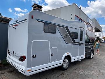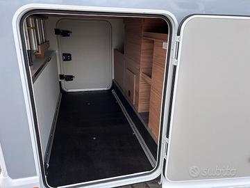 PACCHETTO VANSATION (di serie) : Sospensioni pneumatiche a 2 canali per assale posteriore con compressore per migliorare il comfort di guida e regolare l'altezza del veicolo -Chassis con verniciatura metallizzata: Grigio Indium -Paraurti anteriore grigio con pannello verniciato nel colore del veicolo - Cerchi in lega "Lismore" da 17'' su pneumatici, color argento (originali VW) - Airbag lato guida e lato passeggero con disattivazione dell'airbag lato passeggero - Coprisedili di alta qualità per il sedile del conducente e del passeggero nel design KNAUS -Parabrezza in vetro laminato con protezione dal calore - Sistema oscuranti REMIfrontV per la cabina guida - Hill Holder (assistenza alla partenza in salita) - Freno di stazionamento elettronico con funzione auto-hold - Funzione di riconoscimento dei segnali stradali - Sistema di rilevamento della distrazione e della stanchezza - Sensori pressione pneumatici VW Crafter - Serbatoio carburante da 75 litri - Specchi retrovisori esterni regolabili elettricamente e riscaldati - 1 presa di ricarica USB-C per dispositivi mobili nella base dello specchietto sul parabrezza e 2 prese USB-C per dati e ricarica nel cruscotto - Videocamera per la retromarcia completa di cablaggi - Sistema di chiusura con un'unica chiave - Sportello di servizio per ServiceBox 70 x 40 cm, anteriore sx - Portellone garage 80 x 110 cm, sx - Finestra a compasso nel cupolino, con zanzariera e oscurante (anteriore) - Pareti laterali in lamiera lisca, color Grigio Campovolo - KNAUS CATEYE evolution - fanali posteriori