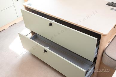 Disposizione interna caratterizzata dalla presenza del letto matrimoniale ribaltabile sopra la dinette. Guardate le foto per capire meglio.