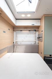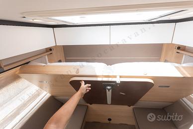 Ricca di caratteristiche uniche e di pregio; oltre al letto ribaltabile spiccano il tetto e le pareti anteriore e posteriore in vetroresina, anche il sottoscocca è interamente rivestito in vetroresina, garanzia contro le infiltrazioni ben 12 (dodici!) anni, frigorifero a colonna a compressore (anche con 40 gradi avrete la vostra birra ghiacciata in poco tempo), porta di ingresso di pregio in unico pezzo, piedini maxi antisprofondamento, stufa Truma a gas a ventilazione forzata, cassetti con chiusura soft, stabilizzatore Alko AKS 3004, maxi oblò Heki 2, finestra anche in bagno, zanzariera anche sulla porta, sportello di servizio sotto dinette, serbatoio acque chiare con carico dall'esterno, WC Thetford a cassetta, kit doccia estraibile con pedana in legno, boiler acqua calda Truma Therme, faretti a led e porte USB per ricarica, tavolo interno sollevabile e...tanto altro!
