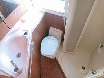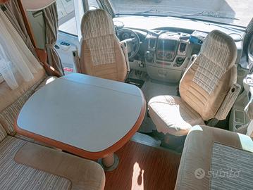 QUESTO GIOIELLO IN SOLI 6 METRI PUÒ OSPITARE COMODAMENTE UNA FAMIGLIA DI QUATTRO PERSONE GRAZIE AL SUO LETTO BASCULANTE DALLE DIMENSIONI ESAGERATE E GRAZIE ALLA SUA DINETTE AVANZATA CON SEDILI GUIDA E PASSEGGERO GIREVOLI CHE PUÒ COMODAMENTE OSPITARE A TAVOLA SEI PERSONE MA ALL'OCCORRENZA PUÒ TRASFORMARSI IN ALTRO LETTO MATRIMONIALE.IL BAGNO È UN ESEMPIO DI INGEGNERIA E OSPITA UN BOX DOCCIA DALLE DIMENSIONI DOMESTICHE, LA CUCINA È A QUATTRO FUOCHI CON FORNO E GRILL IL FRIGO IN POSIZIONE RIALZATA PERMETTE UN FACILISSIMO UTILIZZO. NEL PAVIMENTO A DOPPIO FONDO SI TROVANO VARI GAVONI MOLTO UTILI... INFINE IL GARAGE PERMETTE DI CARICARE ANCHE UNO SCOOTER DI GROSSE DIMENSIONI USUFRUENDO PER ALTRO DEL VERRICELLO ELETTRICO CON TELECOMANDO.