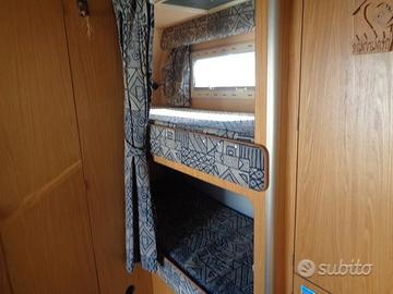 Omologato 5 posti in viaggio ha 7 posti letto, due nel matrimoniale in mansarda,due nei letto a castello in coda lato guida, due ricavabili nella facile trasformazione della dinette grande e uno dalla dinette piccola.