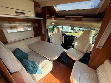 Laika Ecovip 305 - compatto, elegante e super accessoriato Lungo solo 5,99 metri, questo Laika Ecovip Premium è montato su Fiat Ducato 2.3 da 140 CV con soli 24.000 km. Internamente offre una zona living ampia e luminosa con poltrone girevoli, divanetto e oblò Skyview, oltre a un letto basculante elettrico singolo sopra la dinette. Cucina in linea a tre fuochi con frigorifero trivalente, bagno completo con doccia separata. Nella parte posteriore troviamo un letto matrimoniale elettrico che permette di ampliare il grande garage sottostante. VERANDA,CLIMA CABINA, AUTORADIO CON RETROCAMERA, PANNELLO SOLARE, PORTA MOTO GOLDSHMIDTT,CERCHI IN LEGA, ANTIFURTO,LETTO BASCULANTE ELETTRICO, LETTO POSTERIORE ELETTRICO DATI TECNICI Anno Produzione: Numero Posti: 4 Posti Letto: 3 Lunghezza: Larghezza: 230 Altezza: 290 Patente: B Cambio: Manuale Num. Marce: 6 Trazione: Anteriore DOTAZIONI EXTRA: