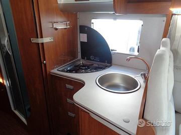 I sedili sono girevoli, ed il mezzo e' dotato di tendalino, doppio serbatoio,antifurto,antenna tv,portabici,aria condizionata in cabina,retrocamera,autoradio,pannello solare,trio gas, porta cellula con zanzariera.