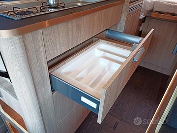 Tipo: furgonato Marca: Laika Modello: Ecovip 600 Produttore: Laika Colore: Grigio Anno: 2023 Meccanica: Fiat Ducato 2,2 M-Jet Potenza cv (kw): 140 (103) Trazione: anteriore Trasmissione: manuale Lunghezza: 599 cm Larghezza: 205 cm Altezza: 270 cm Passo: 4.035 mm Peso: 3.300 kg Patente: B Posti letto: 2 Posti omologati: 4 Normativa EURO: 6D-Final Combustibile: diesel Assicuraz.: 240.00 Costo tassa di proprietà: 105 Garanzia: 1 anno ACCESSORI: 1. Fiat Ducato 2,2 M-Jet - 140 CV - Serie 9 2. Pacchetto Chassis: - Comandi autoradio al volante, - Antenna radio DAB, - Traction+, Hill Descent. 3. Pacchetto Comfort Ecovip: - Zanzariera portellone laterale, - Predisposizione per retrocamera, - Pedana doccia, - Serbatoio recupero isolato e riscaldato, - Luce led e gocciolatoio per portellone laterale, - Upgrade cucina: mensola abbattibile laterale, vani a giorno illuminati lato ingresso. 4. Scalino elettrico d'ingresso cellula 5. Cerchi in lega da 16" Nero Matt 6. Pacchetto Chassis Design 7. Verniciatura esterna "Lanzarote Grey" 8. Messa su strada *** Prezzo veicolo in esposizione: euro 75.915,- IN PROMOZIONE A: euro 64.900,-