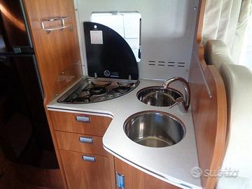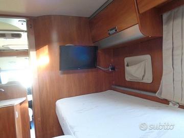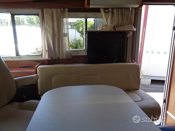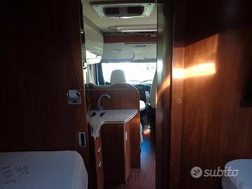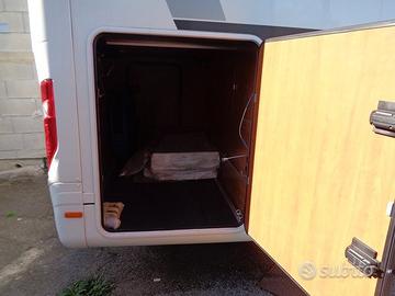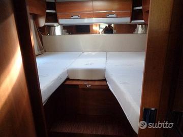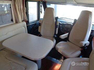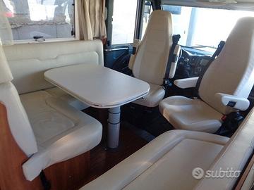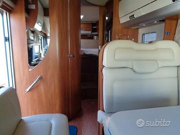 Il mezzo e' lungo 749 centimetri e largo 231, ha il doppio pavimento ed e' dotato di tendalino, oscuranti plissettati in cabina, doppio serbatoio, antifurto, antenna tv satellitare motorizzata, , aria condizionata in cabina, retrocamera, riscaldatore supplementare, autoradio, pannello solare, air bag, frigo alto ,tv, forno a gas, garage, due maxi oblo panoramici, sedili girevoli, clima cellula, turboventola, trio gas, inverter, attacco doccia esterna, staccabatteria.