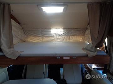 E' omologato per 4 posti in viaggio ed ha 4 comodi posti letto distribuiti su due matrimoniali, uno con letti gemelli in coda che si possono unire ed uno molto grande basculante sopra il posto guida.