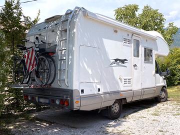 Laika Ecovip 8.1 su meccanica Ducato 2.8 JTD (147 CV), 88.000 km, immatricolato ottobre 2005, cambio manuale 5+R, dimensioni 6,53 x 2,32 h 3,1 metri, 6 posti letto, 5 posti omologati in viaggio. Sempre rimessato al coperto. Ultima revisione luglio 2024. Doppio pavimento con gavone passante; Letto matrimoniale mansardato; Dinette centrale con possibilità di allestire un letto matrimoniale; Letti a castello in coda con garage a volume regolabile; Armadio a doppia anta; Bagno con doccia separata; Piano cottura 3 fuochi con lavello SMEW + ventola aspirante;Frigorifero Dometic, 150l trivalente automatico con congelatore separato;Forno a gas SMEW; Riscaldamento/Boiler Truma Trumatic C; Zanzariere ed oscuranti su tutte le finestre e oblò; Vano esterno per doppia bombola con scambiatore manuale; ACCESSORI: Alzacristalli e specchietti elettrici; Aria condizionata cabina; Chiusura centralizzata; Antifurto volumetrico e perimetrale; Retrocamera con monitor a colori; Sospensioni ad aria: Gomme invernali su cerchi; Sedile passeggero su piastra girevole; Pannello fotovoltaico; Inverter 350 watt; Riscaldamento supplementare Webasto canalizzato in tutto il camper; Doppio serbatoio di carico acque da 100 litri cad.; Forno a gas; Luci interne a led; Doppia batterie servizi, NDS GREEN POWER 12V 100AH; Tendalino Fiamma; Striscia a led posizionata sotto la veranda; Portabici Fiamma x 4 bici; MANUTENZIONI: 8/2019 - 55.000 km: Retifica balestre posteriori 9/2020 - 60.300 km: Sostituzione Alternatore 10/2021 - 62.500 km: Sostituzione pompa freni Sostituzione frizione 10/2024: Sostituzione batteria motore Ultima manutaenzione, 05/2025 - 81.900 km: Sostituzione Batteria servizi Sostituzione cuscinetti semiasse posteriore Sostituzione pinze freno anteriori e posteriori, compreso pastiglie Sostituzione dischi freni posteriori e ganasce freno a mano Sostituzione cuscinetti semiasse posteriore Tagliando: Olio, filtro olio, filtro gasolio, filtro aria