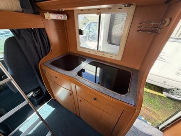 La cucina è pratica e spaziosa, dotata di numerosi vani di stivaggio, cappa aspirante e frigorifero da 146 litri, perfetta per viaggiare in autonomia. Il bagno è ampio, con doccia separata, finestra e armadio capiente nelle immediate vicinanze, assicurando comfort anche durante soste prolungate.