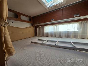 Clima Cabina - Cruise control - Riscaldatore supplementare da viaggio - Presa doccia esterna acqua calda e fredda - Pannello solare - Antenna TV satellitare automatica - TV - Inverter - Antifurto - Veranda - Porta cellula attrezzata con pattumiera - Doppio pavimento passante - secondo serbatoio acque chiare - 2° cassetta WC - Porta pacchi con scaletta - Porta bici - Retrocamera - Veranda - Autoradio Doppio Din - Forno a gas - cucina 4 fuochi - cappa in cucina - Oblò panoramico sopra la dinette - Frigo alto con surgelatore separato - Chiusura centralizzata anche porta cellula - Gomme nuove