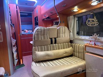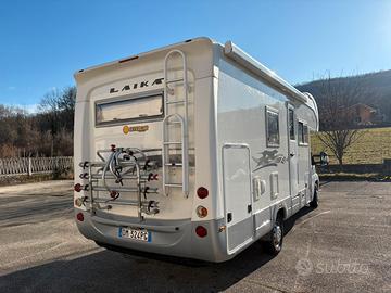 Vendo Camper LAIKA Ecovip 9 del 2008 su Fiat Ducato 3.000 160 cv Omologato 4 persone, 6 posti letto (mansarda superiore, matrimoniale e dinette cabina ) Lunghezza 7.20 Doppio pavimento per camper invernale Tagliandi effettuati ogni anno prima di partire per le vacanze Due fogli di balestra Clima cabina Clima cellula Treno gomme estivo e invernale Tv 12 volt Inverter 1500 w Pannello solare Frigo con congelatore Forno Piano cottura 3 fuochi Doppio serbatoio acqua da 100 l Doppia cassetta wc Riscaldamento Truma 6 Tendalino Doccino esterno acqua calda/fredda Presa esterna gas Doppia bombola gas con dual control Cruise control Porta bici FIAMMA da 4 e-bike con base estesa Supporto di rinforzo per porta bici in alluminio con attacco al telaio Antifurto volumetrico e perimetrale Copertura esterna anteriore completa per camping invernale Tenuto in rimessaggio coperto tutto l'anno Vendo per cambio tipologia interni