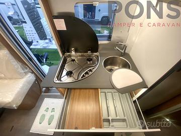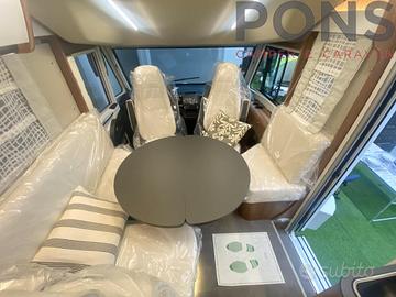 Chilometraggio: 0 Condizioni: nuovo Immatricolazione: Tipologia: Camper - Motorhome Carburante: Diesel Tipo di cambio: Manuale Bellissimo motorhome in pronta consegna: la nuova gamma Ecovip H 3109 nella colorazione Titanio, questo nuovissimo veicolo di casa madre Laika su meccanica Fiat Ducato 140 CV 2.2 cc garantisce confort e qualità costruttiva per viaggiare dove vuoi. Questa bellissima casa viaggiante presenta una spaziosa dinette a L con comoda seduta contrapposta, tavolo tondo con apertura a libro e sedili guida girevoli; cucina con piano cottura a 3 fuochi, lavello e ribaltina aggiuntiva. Lateralmente un frigo grande con scomparto freezer separato. Di fronte il bagno che ospita anche la doccia. La zona notte posteriore, con comodi letti gemelli, può essere suddivisa dalla zona giorno grazie alla porta del bagno che crea uno spazio separato per maggiore privacy. Altri due posti letto ricavabili dal basculante sopra la cabina guida che non va ad incidere sulla dinette. Grazie alla versione Titanio il veicolo dispone già dei seguenti accessori: Pack Chassis pro con: freno a mano elettrico, TPMS, clima cabina automatico, sistema di ricarica per smartphone, strumentazione digitale con display Pack Multimedia Pioneer: sistema multimedia con autoradio 9" e retrocamera Fari full led Tappezzeria e schienali Firenze Pareti esterne grigio Expedition Grafiche e tende color Titanio Prezzo del veicolo con messa su strada inclusa: € 114.872 Visibile presso la nostra concessionaria a Barberino Tavarnelle (FI) ! La Pons srl declina ogni responsabilità per eventuali involontarie incongruenze, che non rappresentano in alcun modo un impegno contrattuale. Rivenditore PONS CAMPER E CARAVAN