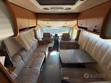 Vendo Laika ecovip H710 H 710 anno 2003 km 113000, Fiat 2.8 127 cv Distribuzione e tagliando fatto gomme Continental vancocamper con km 10000. Aria condizionata in cellula, NO aria condizionata in cabina. Serbatoi nautici elettrici( no cassetta ) alta autonomia. Frigo con congelatore trivalente Forno Aria condizionata dometic Parabola satellitare automatica Invert da 2000w NDS Riscaldamento a gasolio aggiuntivo ( cinebasto ) usato forse 10 ore. Stufa a gas truma Antifurto nuovo volumetrico e perimetrale su tutte le finestre Antifurto satellitare Alemasat. Porta moto portata max 120 kg. Tv Tutte luci led Tre fuochi Bagno con doccia separata. Ampia dinette Letto basculante 2 letti a castello Gavoni passanti Roll tank da 40 lt Camper super coinbentato e spazioso con dinette sempre pronta anche con letro basculante abbassaro 4 posti in viaggio. Soffietti posterio Alko ma con autonomia di 2/3 gg eventualmente da sostituire. Per qualsiasi altra informazione o domanda potete contattarmi. Mezzo pronto a partire. Visibile a L'Aquila