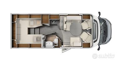 DATI TECNICI Anno Produzione: 2026 Numero Posti: 4 Posti Letto: 5 Lunghezza: Larghezza: 225 Altezza: 299 Patente: B Cambio: Manuale Num. Marce: 6 Trazione: Anteriore DOTAZIONI EXTRA: - Letto basculante elettrico sopra il soggiorno - Eur 2296 - Presa gas esterna - Eur 501