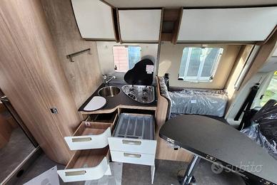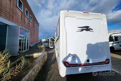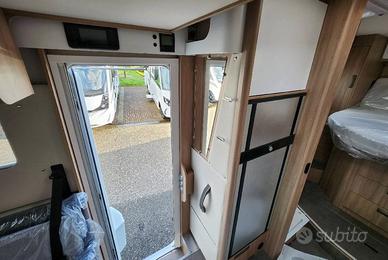 Semintegrale con letto matrimoniale nel basculante, dinette face to face nella zona anteriore, cucina e bagno con doccia separata nella zona centrale e bel letto matrimoniale in stile nautico con sottostante gavone garage nella zona posteriore