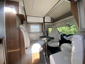 nonostante la sua lunghezza compatta di 6,60mt questo veicolo ospita una dinette confortevole grazie ai sedili guida girevoli e il tavolo con apertura a libro.