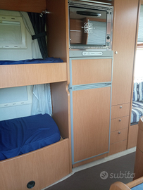 Camper tenuto gelosamente con molti accessori aria condizionata sia cabina e cellula gruppo elettrogeno 400w di pannelli solari renogy con regolatore renogy gestibile da app scarichi elettrici 5 telecamera riscaldamento ausiliare in marcia frigo grande 2 TV inverter due batterie 100ah cerchi in lega tendalino nuovo 4m telaio alko con doppio pavimento impianto stereo doccia esterna 2 serbatoi acqua moquette invernale oscurante termico copri gomme termico impianto Cb con baracchino il camper e sempre rimessa ro coperto e tagliandato annualmente tutte le luci sono a led generoso bagno con doccia separata e due grandi armadi illuminati