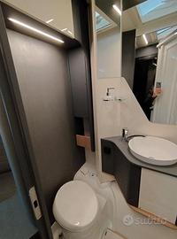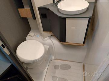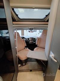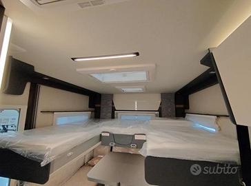 Diverse, invece, le possibilità offerte in configurazione notturna: i letti gemelli basculanti posteriori, a movimentazione elettrica, offrono due letti singoli di ampie dimensioni (lunghezza fino a 205 cm) e possono essere uniti e, grazie alla rete a doghe scorrevole e all'utilizzo di un cuscino aggiuntivo, creare un maxi matrimoniale da ben 205/190×200 cm da poter sfruttare in entrambi i sensi.