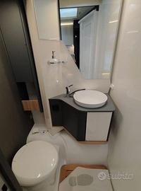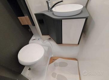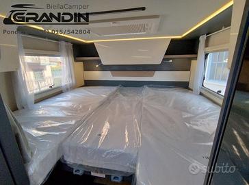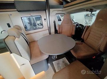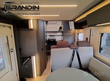 Pack One Kosmo : Fodere cabina coordinate con il soggiorno, Cupolino con skyview integrato, apribile, Letto basculante elettrico sopra il soggiorno (Installando il letto basculante sopra al soggiorno, l'oblò panoramico è spostato nella camera da letto posteriore e sostituito da un oblò da 40x40 cm), Cappa aspirante in cucina, Predisposizione retrocamera, Serbatoio di recupero riscaldato, Oscuranti interni plissettati in cabina per parabrezza e cristalli laterali, Predisposizione pannello solare, Pedana in legno per la doccia, Moquette cabina guida, Porta cellula Premium XL con chiusura centralizzata con telecomando, finestra, oscurante, vani di stivaggio e pistone a gas, Pareti camera da letto posteriore rivestite in Ecopelle, Cestelli e portabottiglie estraibili in cucina, Tappezzeria Siena, Cuscini Liguria,
