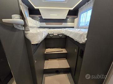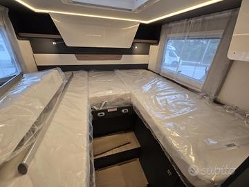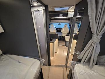 Comandi autoradio al volante - Antenna radio DAB - Predisposizione autoradio DAB e altoparlanti in cabina - Traction+ , Hill Descent Control; Cestelli e portabottiglie estraibili, rivestimento sedili cabina, serbatoio acque grigie isolato, Finestra per cupolino cabina guida, predisposizione retrocamera, serbatoio riscaldato, pedana doccia, Moquette cabina, cappa aspirante, port cellula XL, pareti camera da letto posteriori, oscuranti cabina plissettati, letto basculante elettrico, cerchi in lega d 16", attacchi isofix