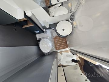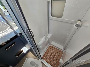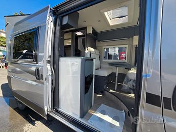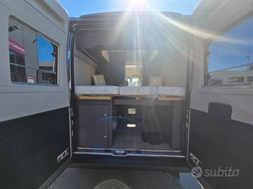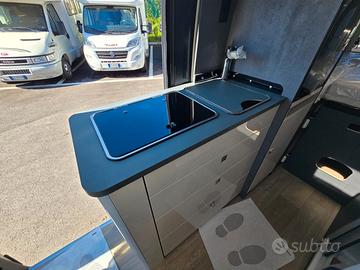 Colore artense grey EURO 886, tappezzeria Firenze EURO 500, Cuscini Firenze EURO 230, oscuranti plisettati in cabina EURO 701, riscaldamento COMBI Diesel EURO 743, scalino elettrico EURO 559 - PACK COMFORT KOSMO CAMPER VAN : * Zanzariera portellone laterale * Predisposizione per retrocamera * Serbatoio recupero isolato * Serbatoio recupero riscaldato * Luce led e gocciolatoio per portellone laterale * Pedana doccia * Pareti camera da letto posteriore rivestite in Ecopelle * Mensola abbattibile in cucina EURO 2.574