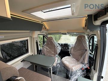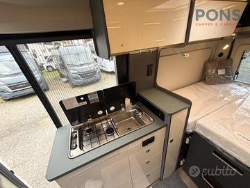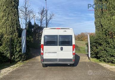 CARATTERISTICHE PRINCIPALI DI QUESTO CAMPER: Meccanica: Fiat Ducato 35 2.2 mjt 140cv Cilindrata: 2184 cm³ Cavalli: 140 cv Euro: 6eb Altezza: 265 cm Larghezza: 205 cm Lunghezza: 541 cm Posti Omologati: 4 Posti Letto: 2 Nuovo Kosmo 50, furgonato di casa Laika su meccanica Fiat Ducato 2200cc 140cv lungo solo 5,40mt. L'allestimento interno si configura con una luminosa dinette con sedili cabina girevoli e tavolo con piano supplementare orientabile. In coda troviamo un comodo letto matrimoniale sormontato da tutto il circondario di pensili nella parte superiore. Il bagno ospita, in un'unico ambiente, anche la doccia, divisibile grazie all'apposita tenda. Prezzo di listino con accessori e messa su strada: € 66.970 Prezzo PROMO chiavi in mano senza ritiro dell'usato: € 59.900 Equipaggiamenti del veicolo: - Cuscini Umbria - Oscuranti interni plissettati in cabina - Pack Comfort Zanzariera portellone laterale, Predisposizione per retrocamera, Serbatoio recupero isolato, Serbatoio recupero riscaldato, Luce led e gocciolatoio per portellone laterale, Pedana doccia, Pareti camera da letto posteriore rivestite in Ecopelle, Mensola abbattibile in cucina - Scalino ingresso elettrico - Tappezzeria Siena La Pons srl declina ogni responsabilità per eventuali involontarie incongruenze, che non rappresentano in alcun modo un impegno contrattuale. [Cod: 1095743-845]