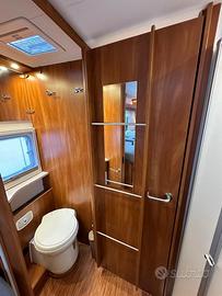 veicolo condizioni pari al nuovo, serbatoio acqua riscaldato, TV satellitare, parabola, tendalino Thule, doppia bombola gpl, antifurto perimetrale e volumetrico, impianto stereo con navigatore mappe Europa, telecamera posteriore, frigo trivalente 140 litri, doccia e bagno separati in due spazi singoli, secondo letto da 140 basculante elettrico, pannello solare batteria servizi e inverter, condizionamento da Dometic, navigatore in plancia. tagliandi regolari.