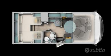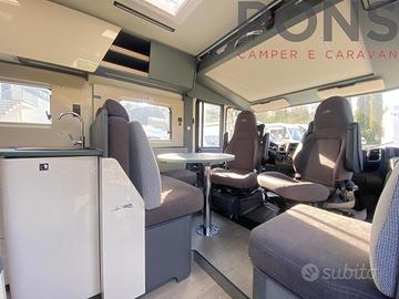 Nella sua lunghezza sotto i 7 mt il veicolo offre un'ampia dinette dotata di un tavolo ergonomico con piano traslabile anti-graffio e anti impronte, sedili cabina girevoli, numerosi pensili per lo stivaggio tra cui anche un vano porta-scarpe all'ingresso.