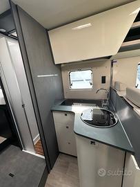 Aspetto Moderno:Il motorhome presenta un design esterno automobilistico, con un frontale in monoblocco di vetroresina, parabrezza panoramico e gruppi ottici a LED.
